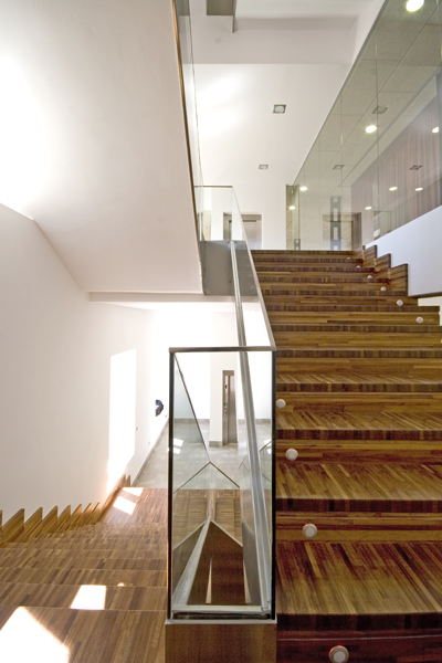 The intervention revolves around very few materials and two pieces proposed in the project: a red curtain and the new staircase. With these two pieces the guidelines were set for the intervention. The space is defined by the flows of changing views and movements which its visitors will subsequently produce i.e. the new space does not depend on the perimeter structure formed by the walls of the old building.