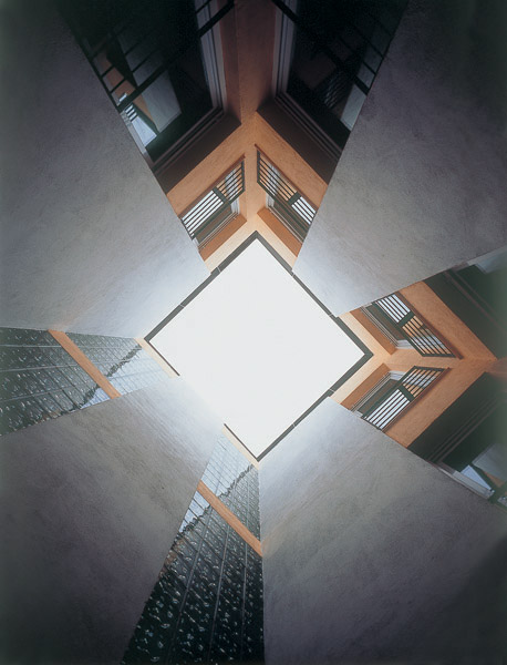 The project is the consequence of the interstitial space which arose after the demolition of a previous building between party walls, a construction presenting grave problems of filtration through caves and pipe works in poor condition, aspects which denoted a wounding and aggressive context, together with the irregularity of the void left by the construction, with a shape in the shape of a funnel in its development from the façade and where it takes place between party walls which affect and overturn towards the inside, on a large part of the surface, in view of the impossibility of recesses or openings.